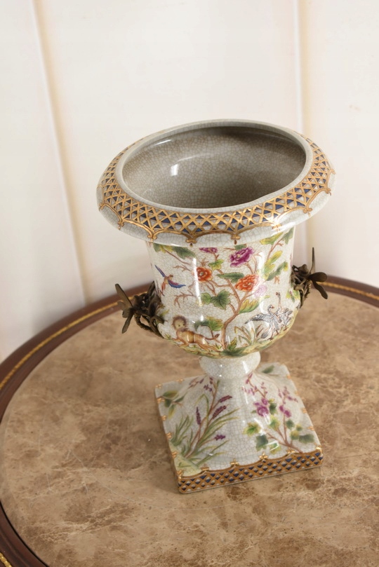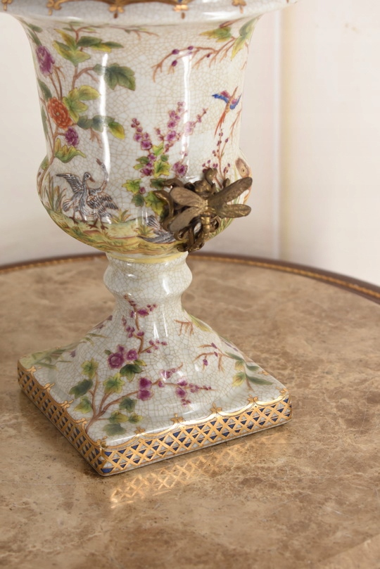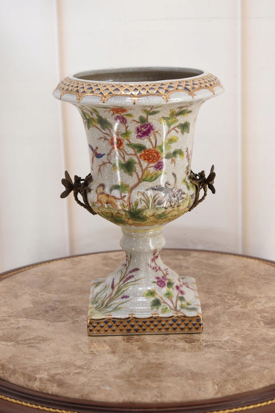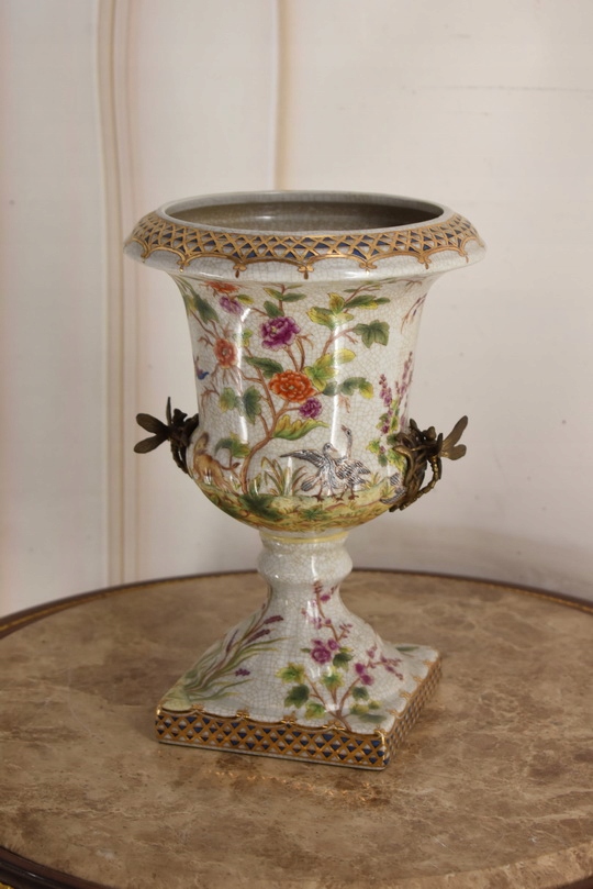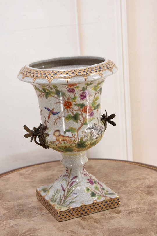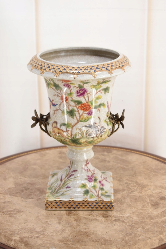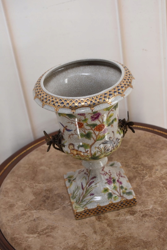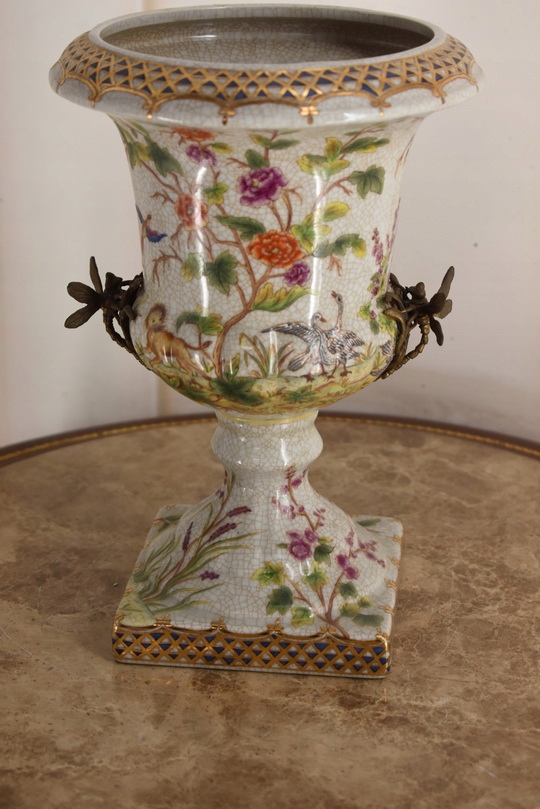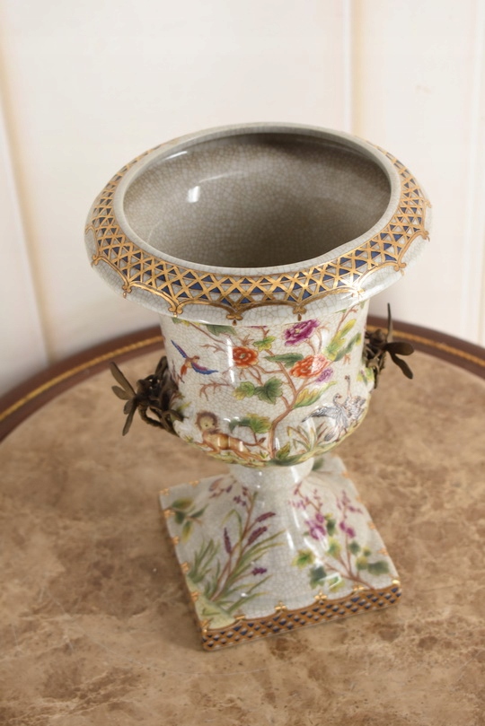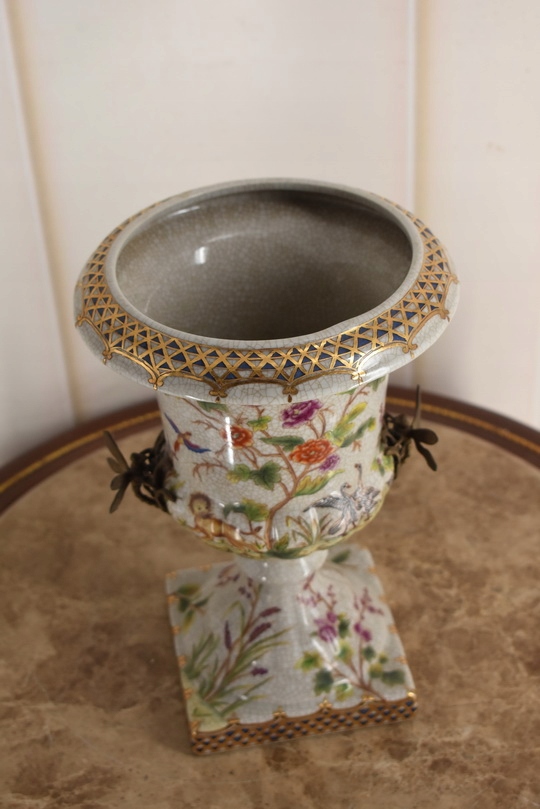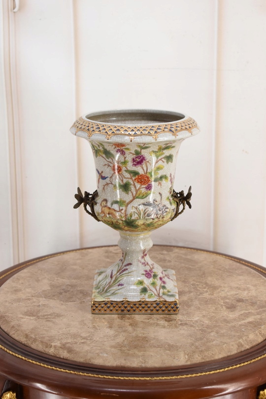 Witam, w dniu dzisiejszym pragnę zaoferować Państwu przepiękną amforę wykonaną z porcelany okutą brązem.