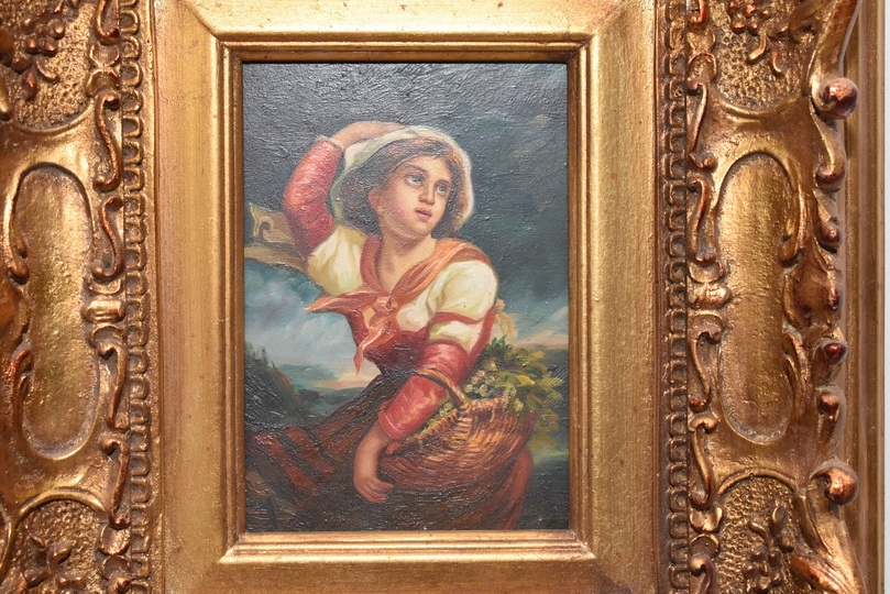 Strona główna » Kolekcje i sztuka » Sztuka » Reprodukcje i przedmioty stylizowane » Malarstwo » Portret Kobieta z Koszem Owoców - Obraz Olejny - Złota Rama
