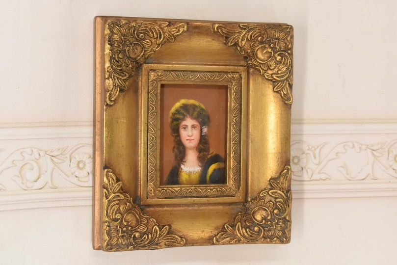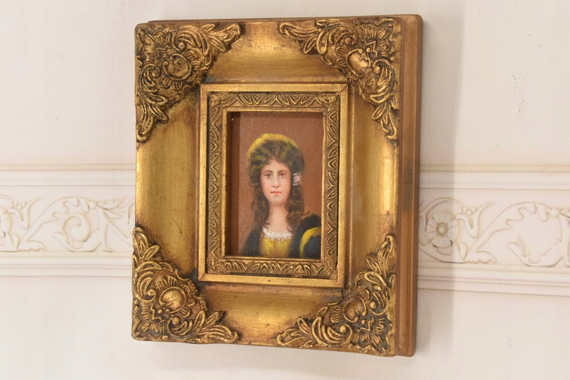 Portret Kobiety w Kręconych Włosach - Obraz Olejny Złota Zdobiona Rama
