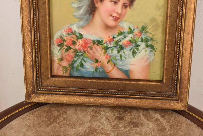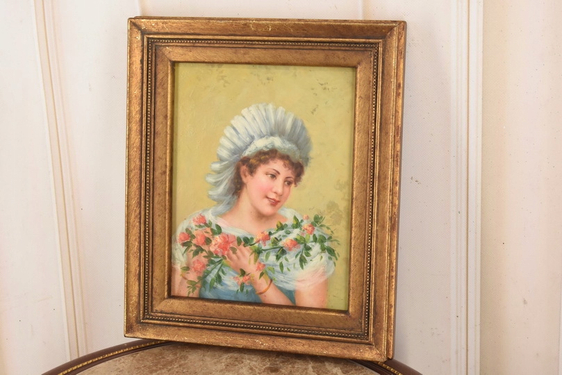 Strona główna » Kolekcje i sztuka » Sztuka » Reprodukcje i przedmioty stylizowane » Malarstwo » Portret Kobiety z Bukietem Róż - Kobieta Dama - Obraz Olejny Złota Rama