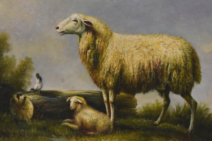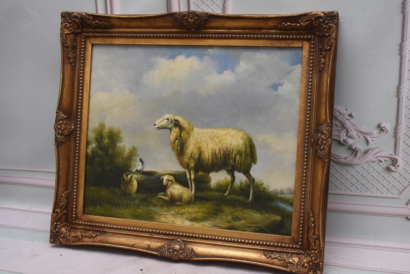 Strona główna » Kolekcje i sztuka » Sztuka » Reprodukcje i przedmioty stylizowane » Malarstwo » Rodzina Owiec - Owca - Złota Rama - Obraz Olejny 71x61