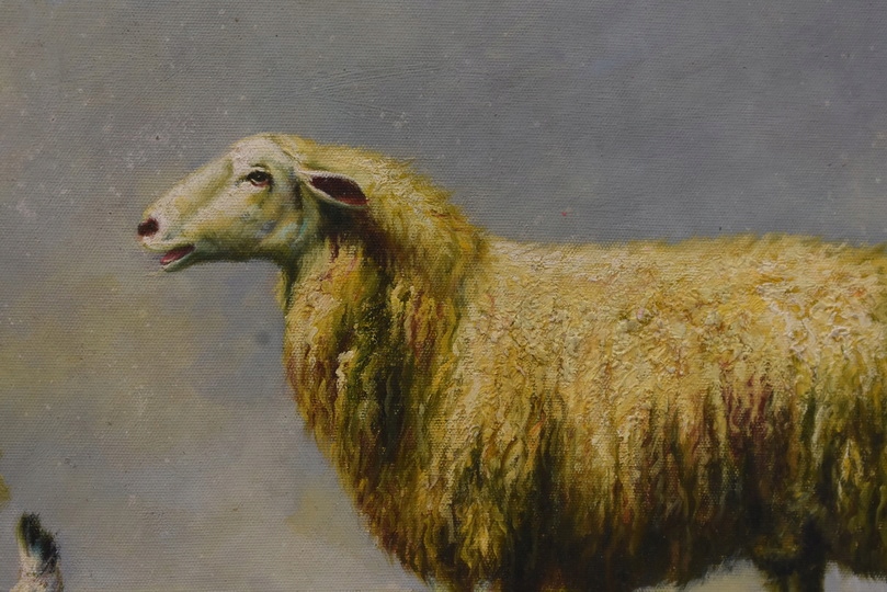 Rodzina Owiec - Owca - Złota Rama - Obraz Olejny 71x61