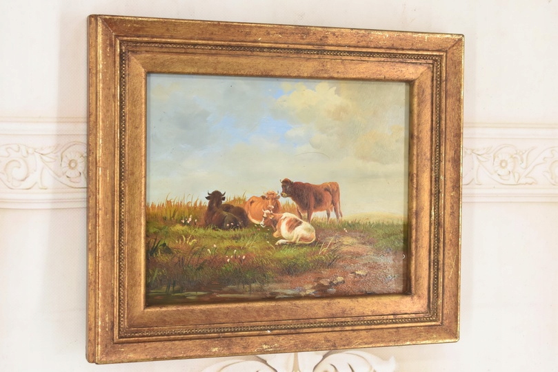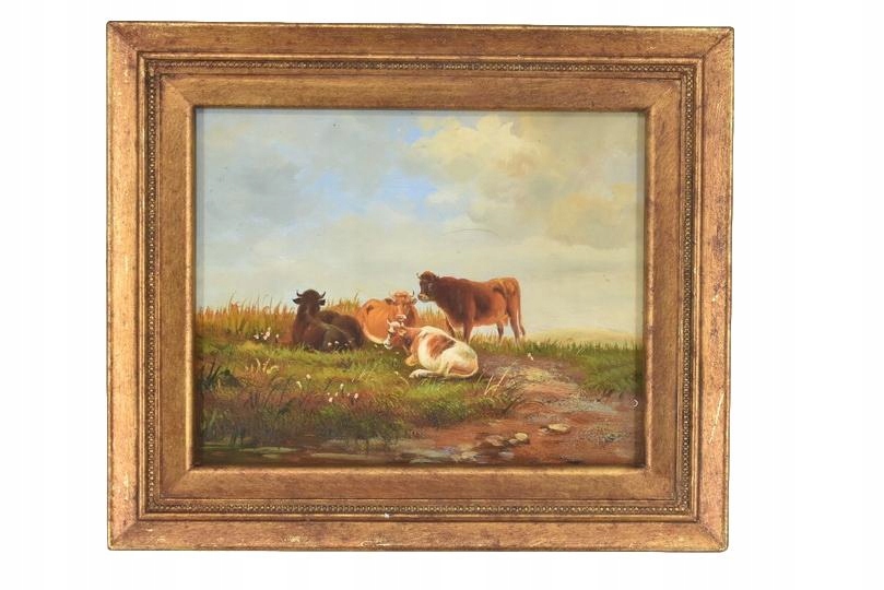 Strona główna » Kolekcje i sztuka » Sztuka » Reprodukcje i przedmioty stylizowane » Malarstwo » Scena Rodzajowa - Stado Krów Na Pastwisku - Obraz Olejny Złota Rama