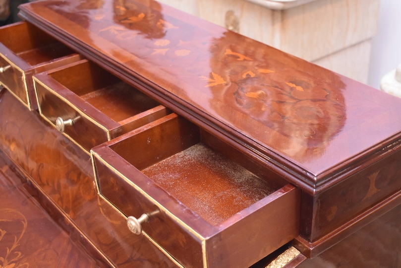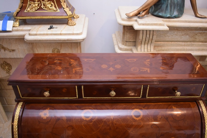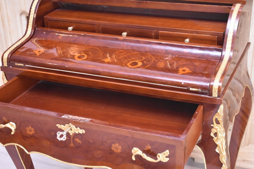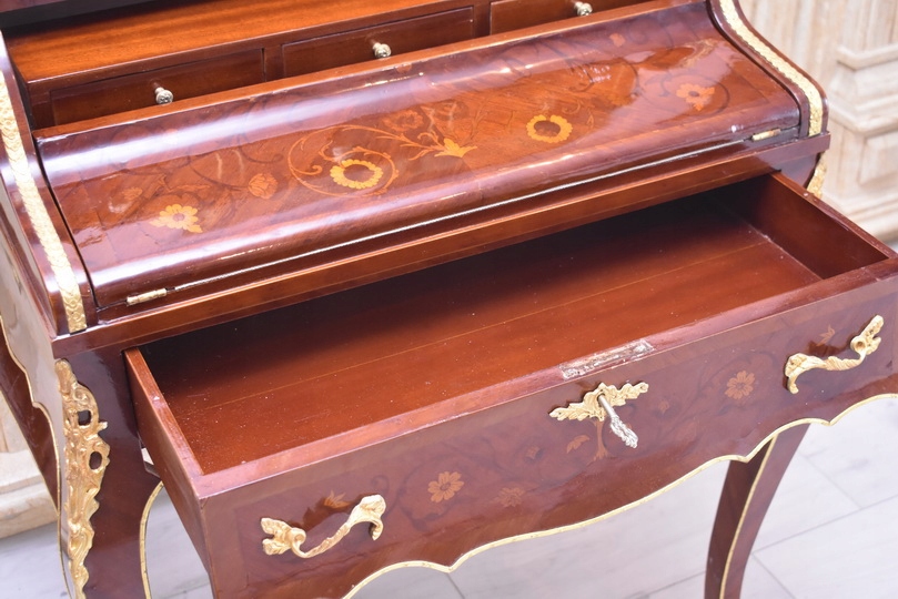 Przedmiotem sprzedaży jest wyjątkowa sekretera w stylu Ludwikowskim łącząca funkcjonalność z klasycznym pięknem. To elegancki mebel, który pełni jednocześnie rolę sekretarzyka, komody oraz szafy, zapewniając dużo miejsca do przechowywania i wygodną przestrzeń do pracy.