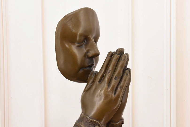 Witam, w dniu dzisiejszym pragnę zaoferować Państwu przepiękną rzeźbę wykonaną z brązu uformowaną na marmurowej podstawie.
