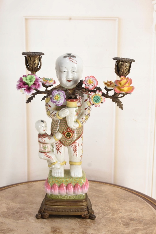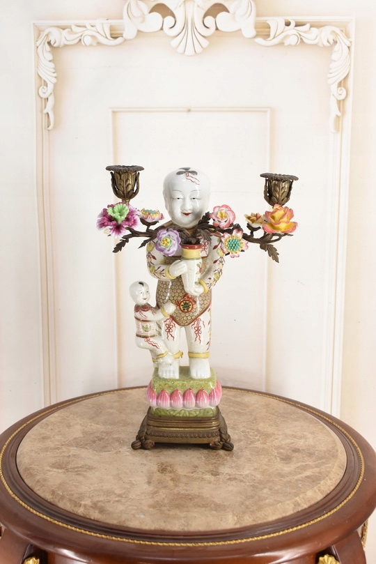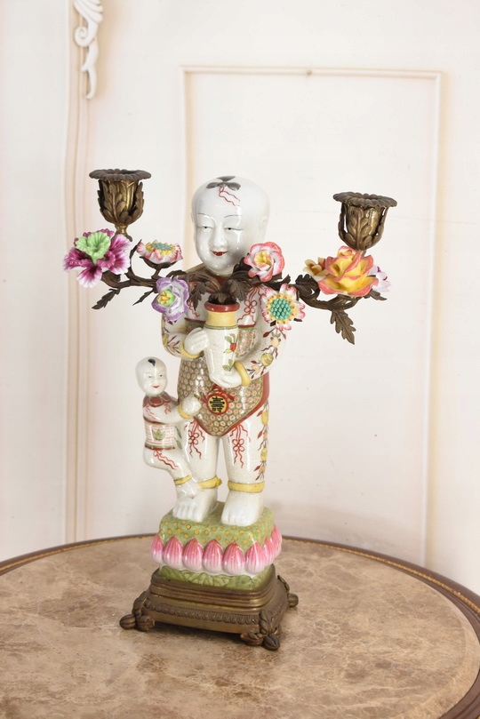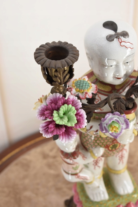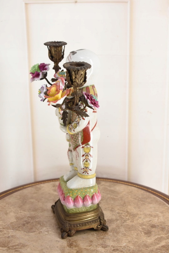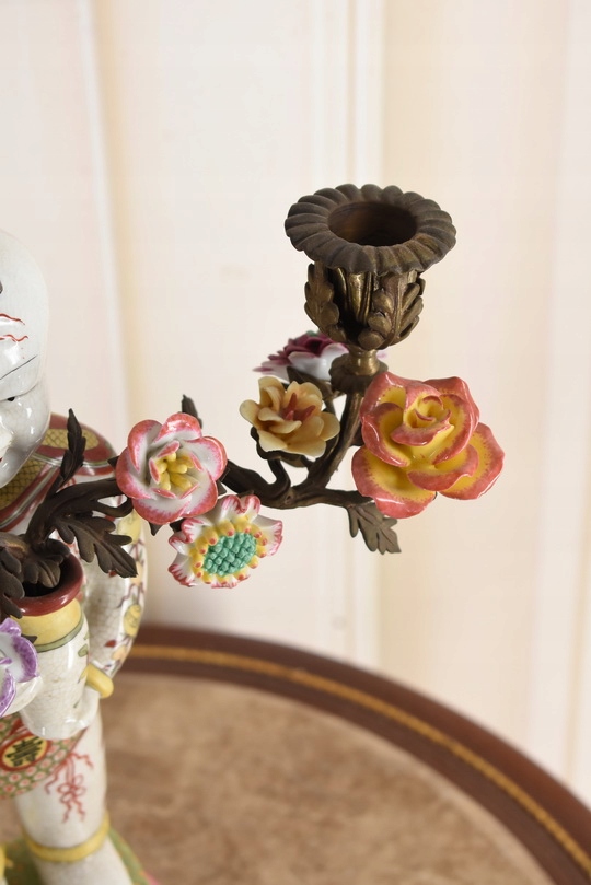 Witam, w dniu dzisiejszym pragnę zaoferować Państwu przepiękny unikalny świecznik wykonany z brązu oraz porcelany.