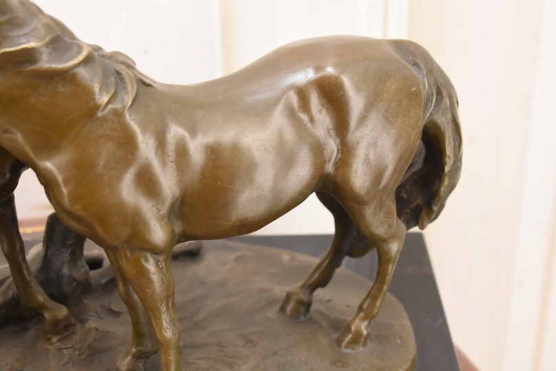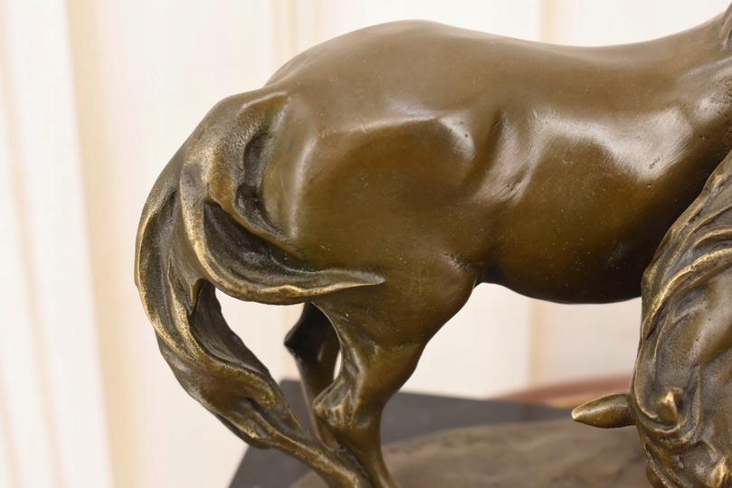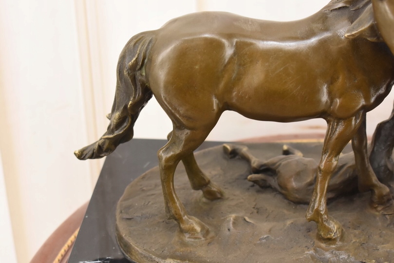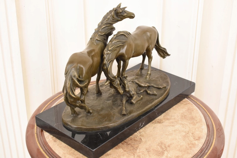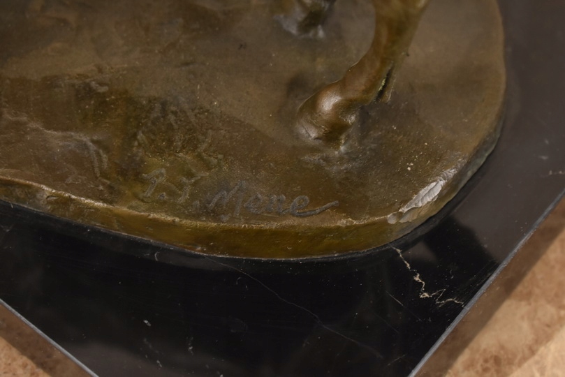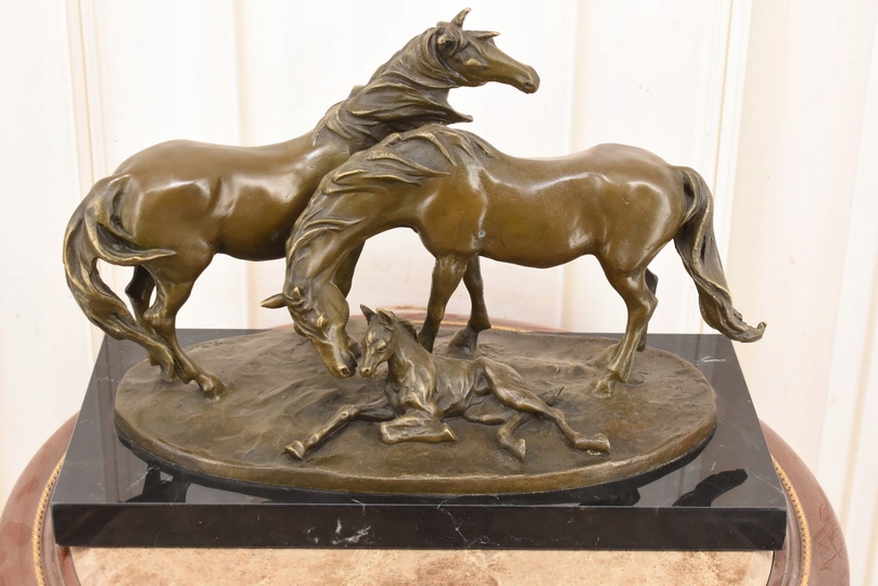Witam, w dniu dzisiejszym pragnę zaoferować Państwu przepiękną rzeźbę wykonaną z brązu uformowaną na marmurowejpodstawie.