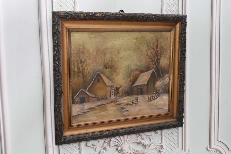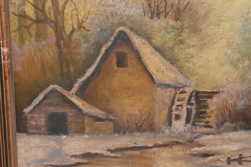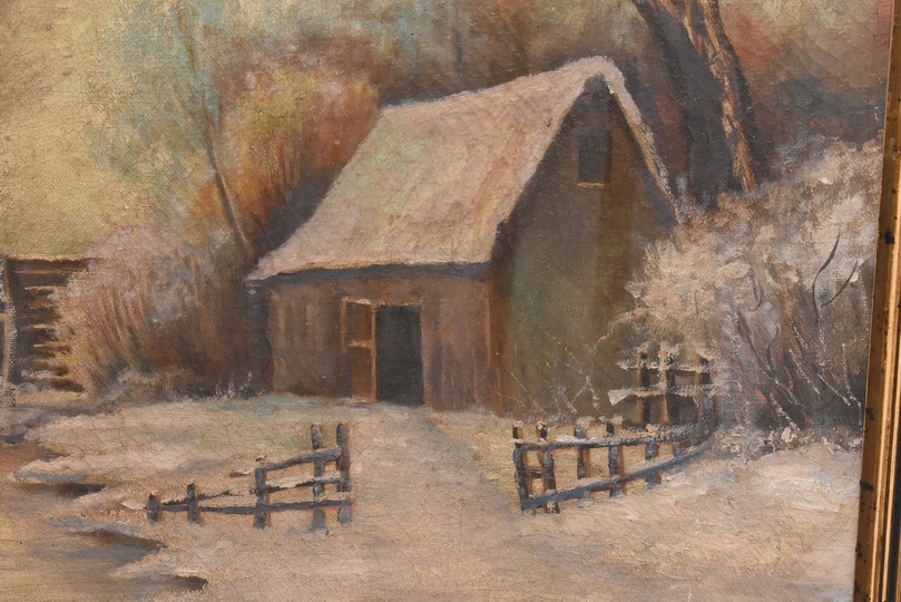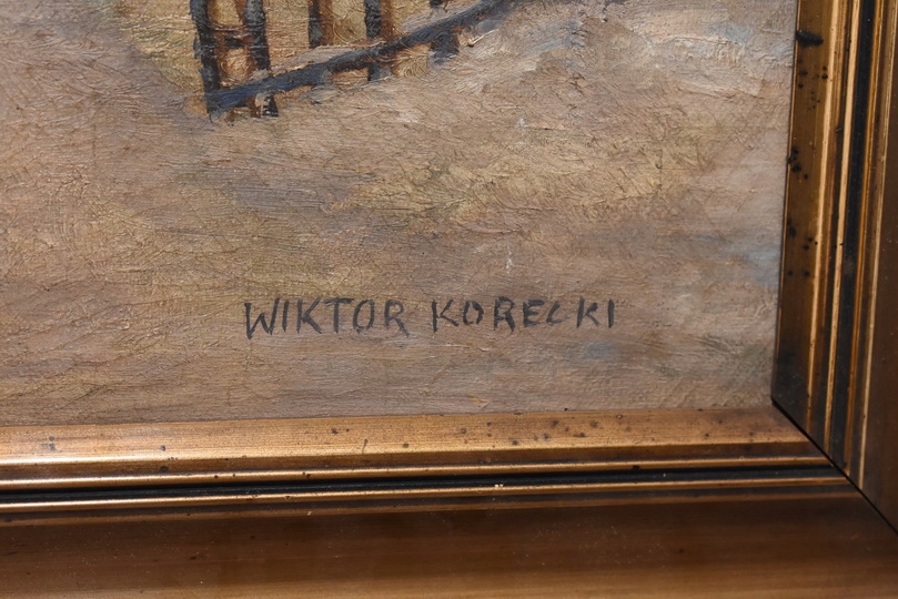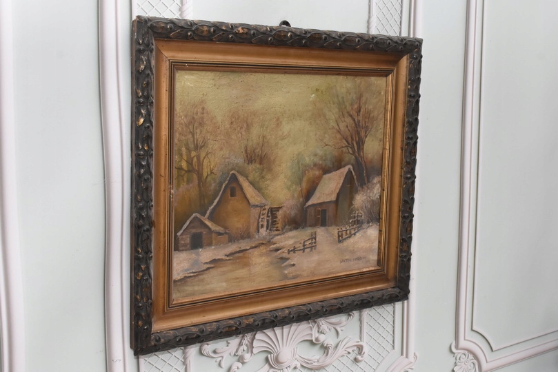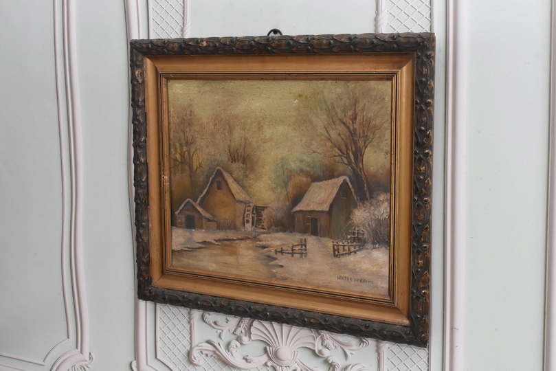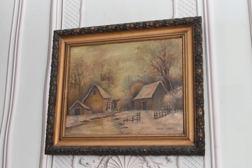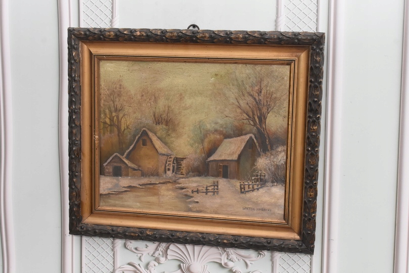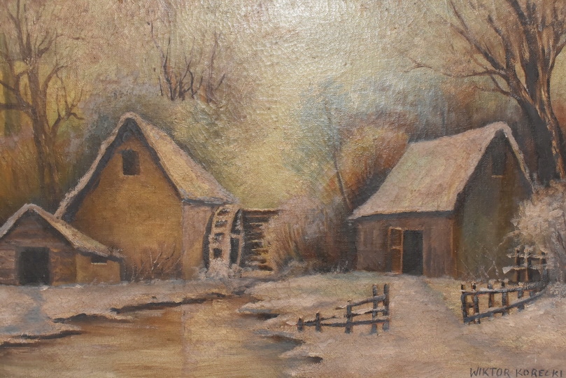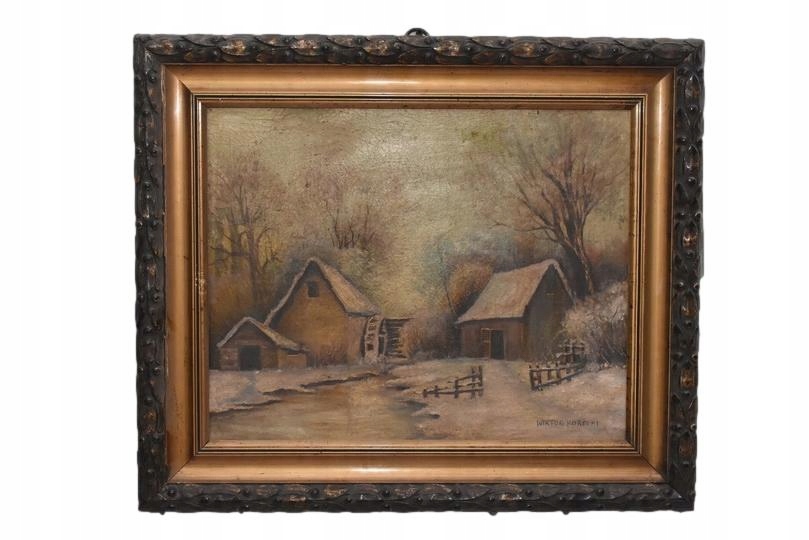 Wiktor Korecki - Wiejskie Chaty Zimą - Polska Zima - Obraz Olejny