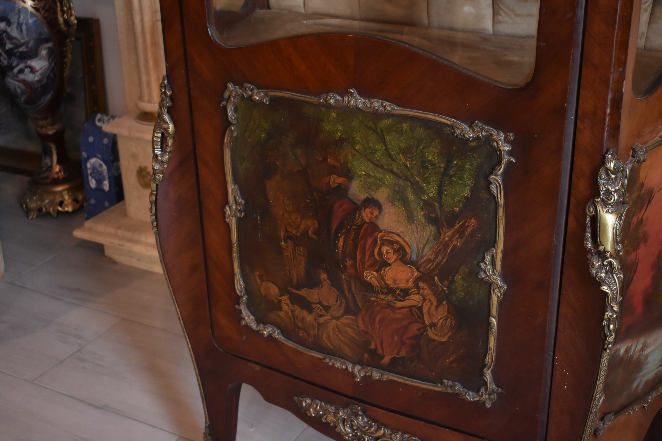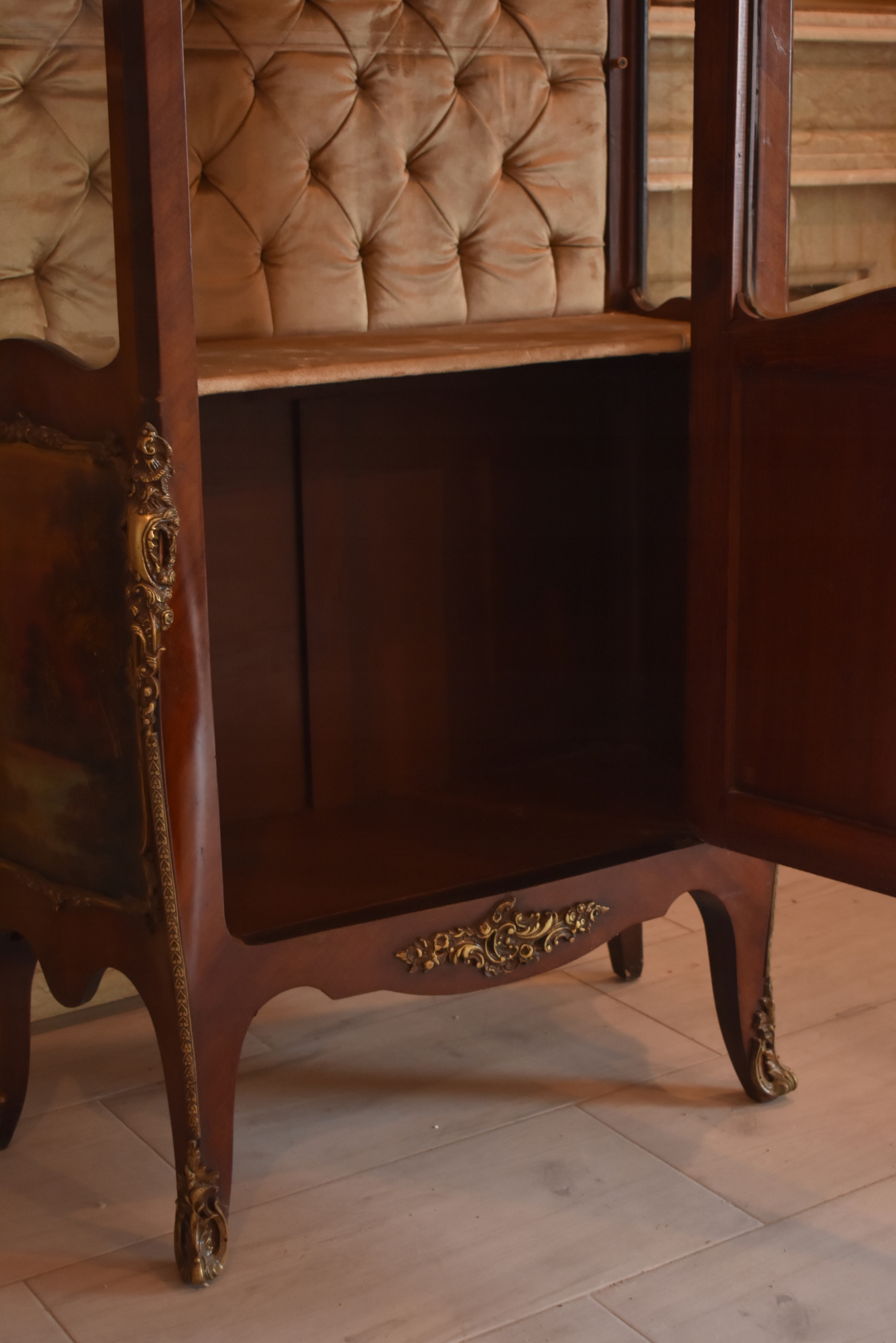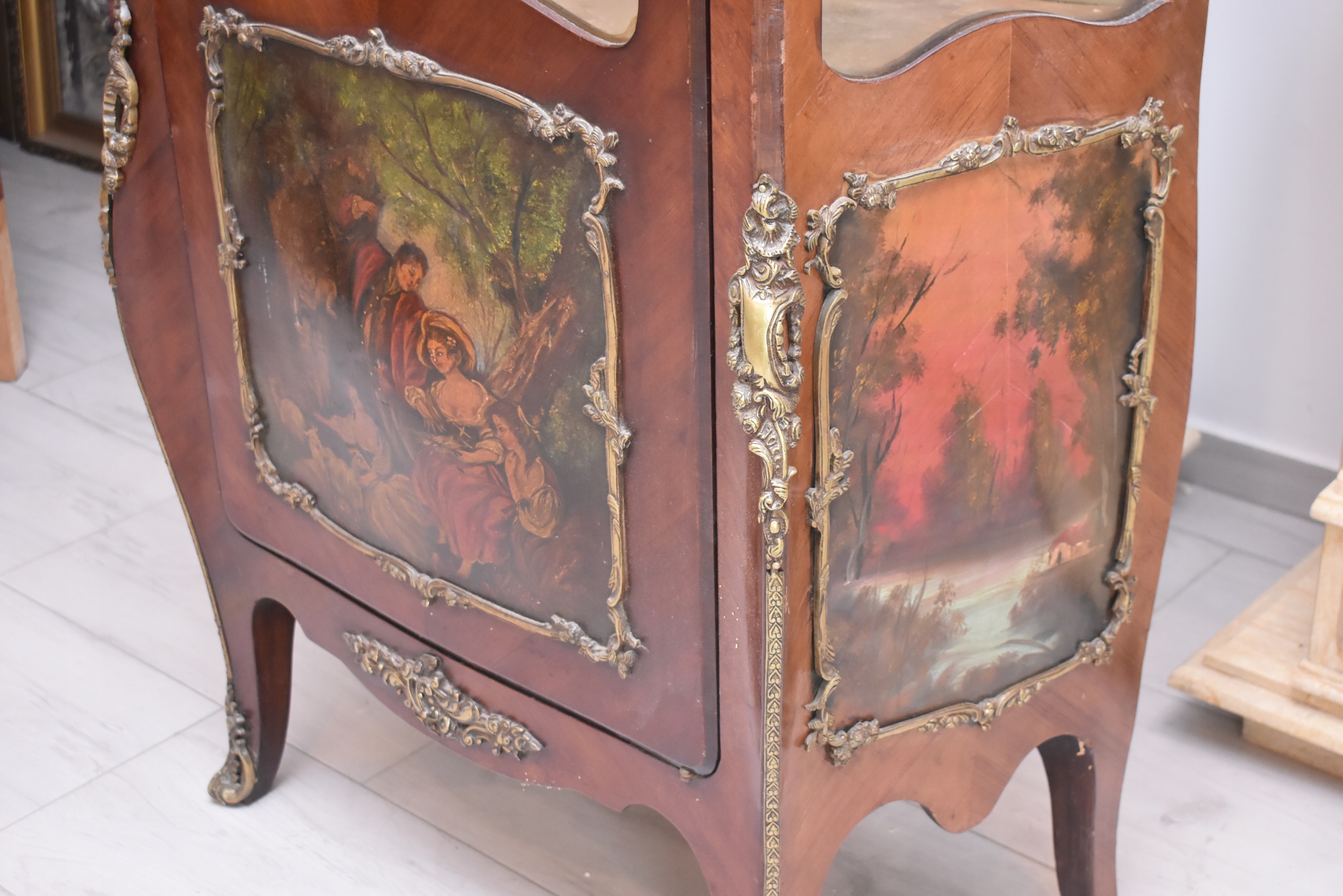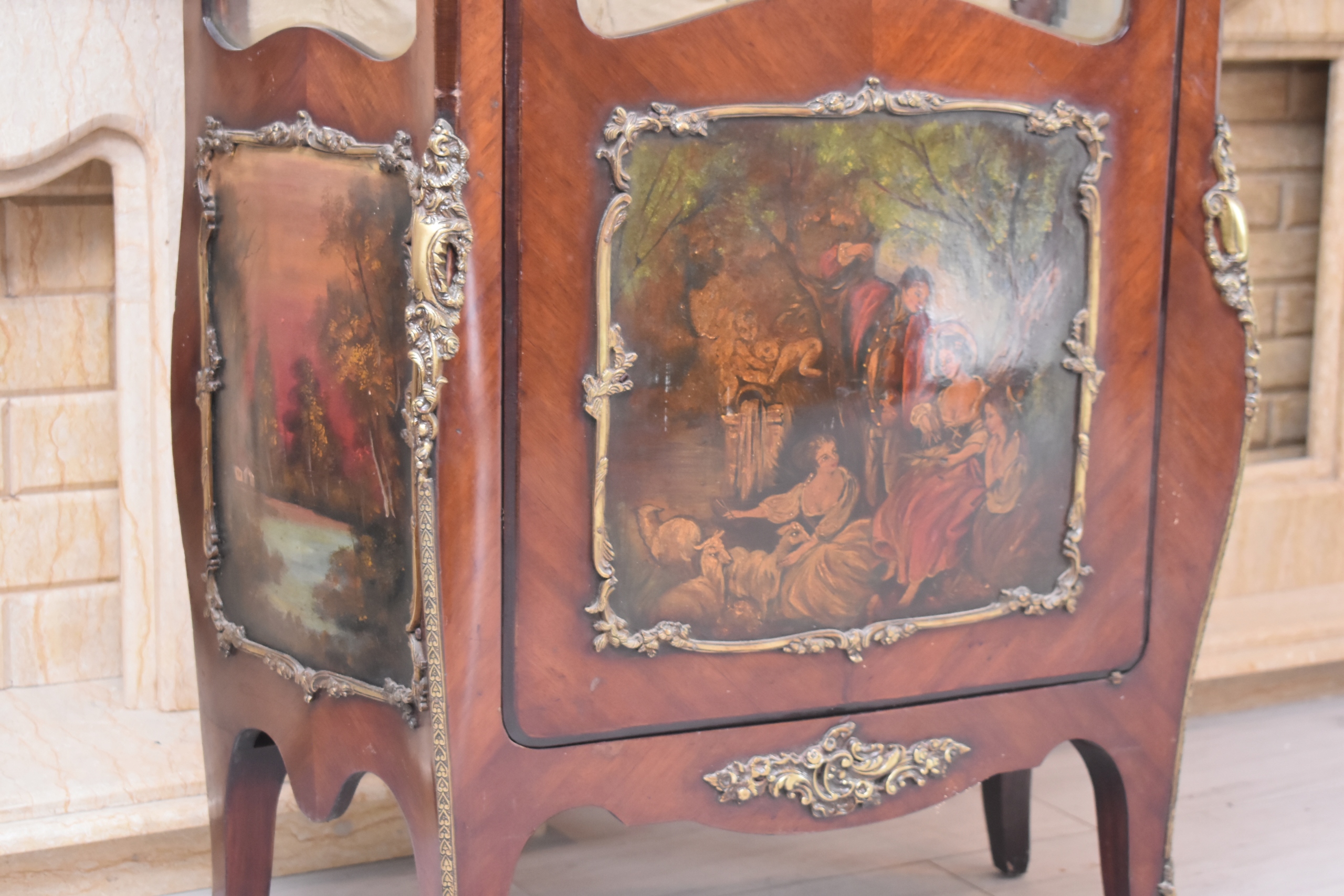 Witryna ta to wyjątkowy element wystroju wnętrza, który zachwyca elegancją i stylem. Ta szafka, będąca jednocześnie pomocnikiem i konsolą, emanuje charakterystycznym urokiem epoki Ludwika XVI i przynosi odrobinę francuskiego szyku do każdego pomieszczenia.