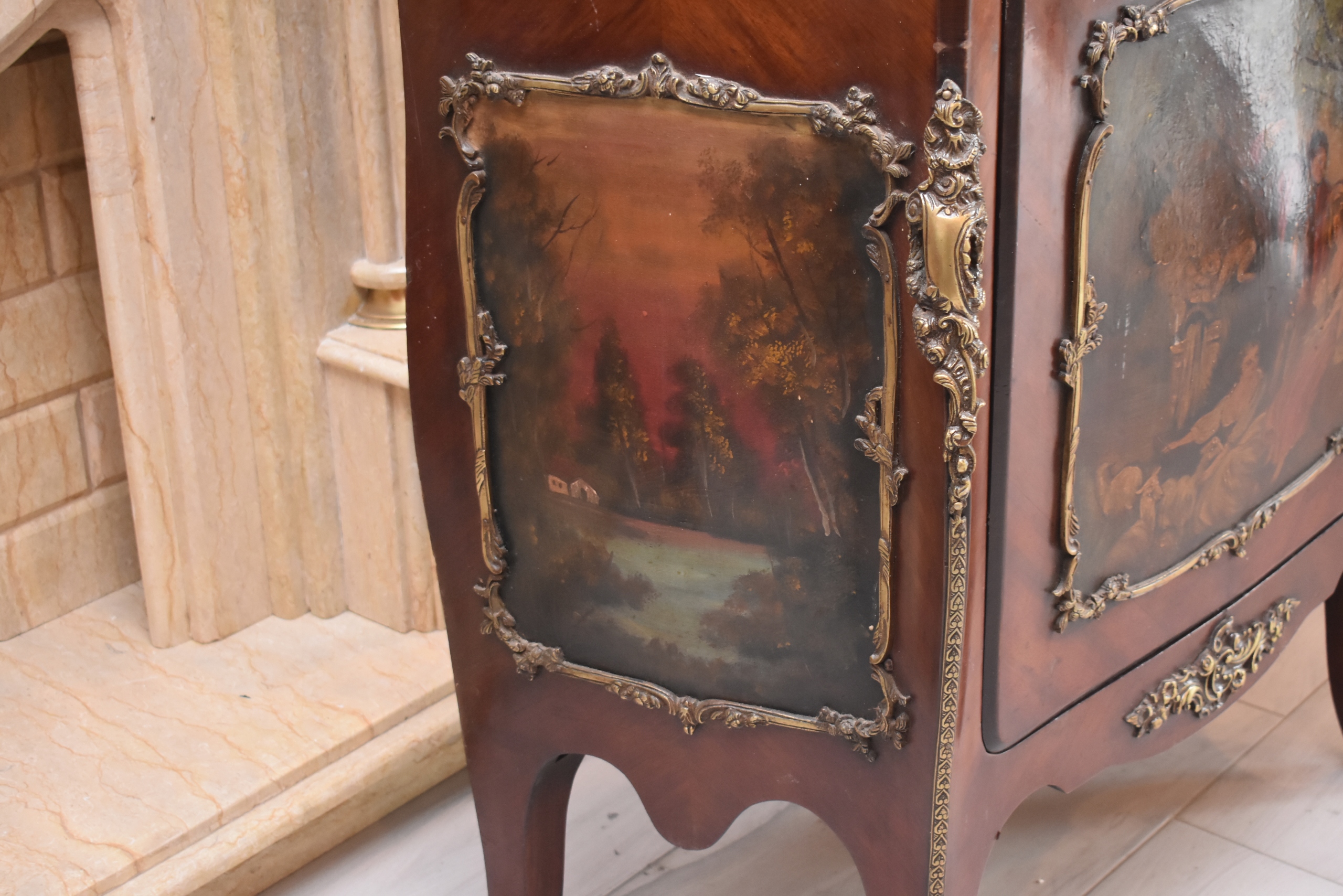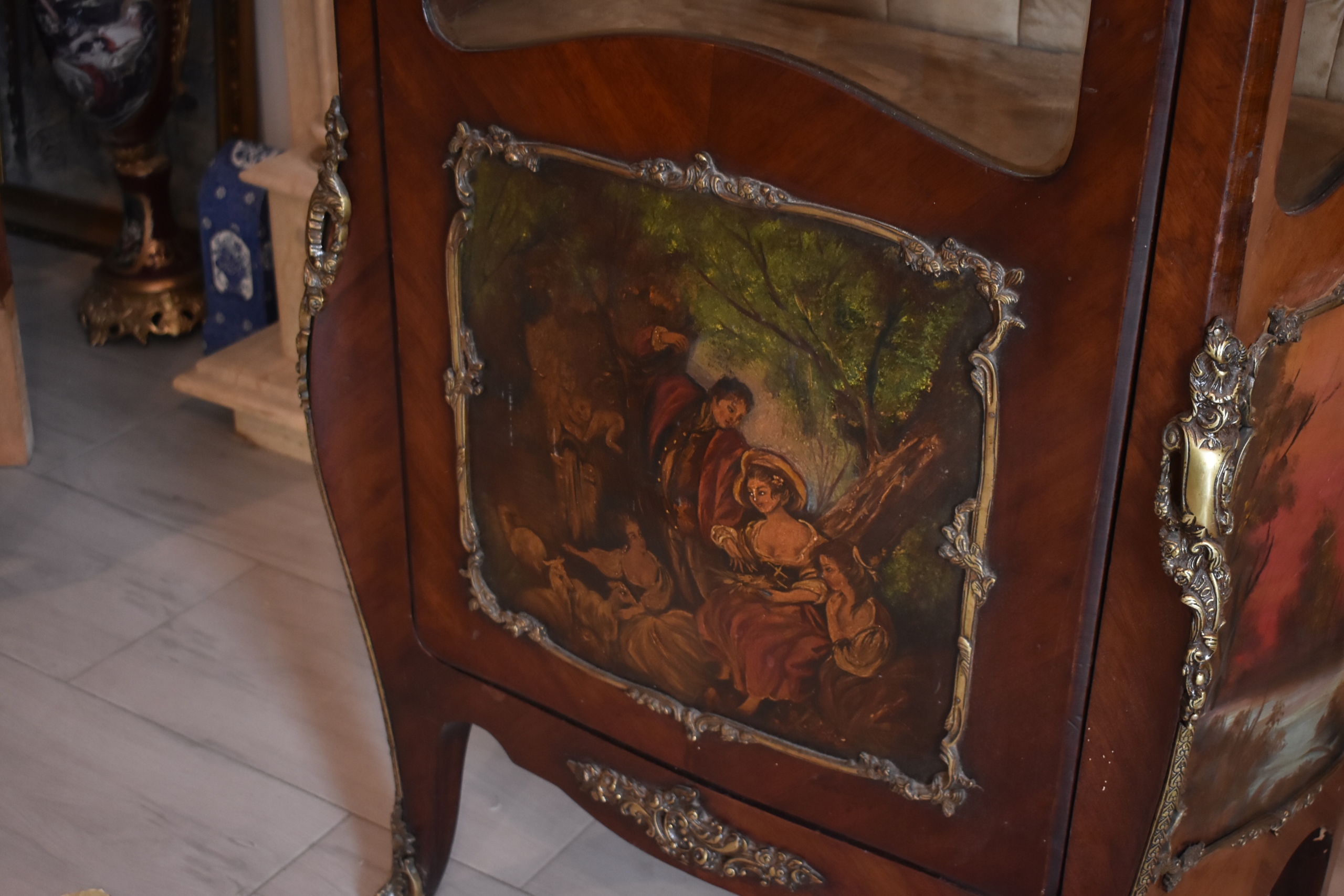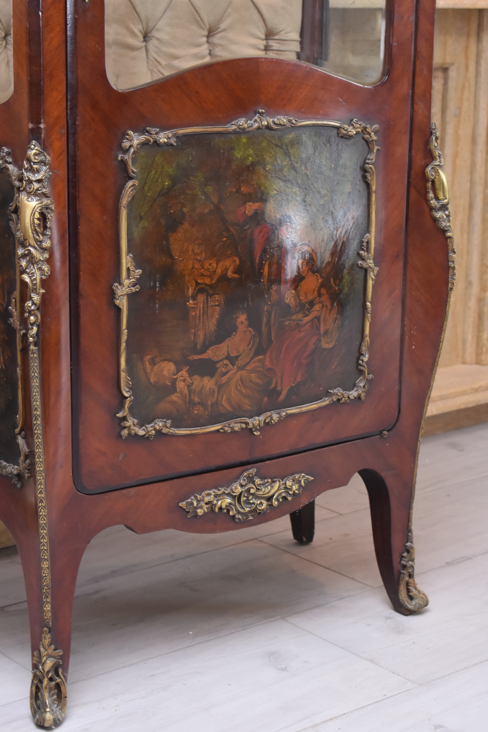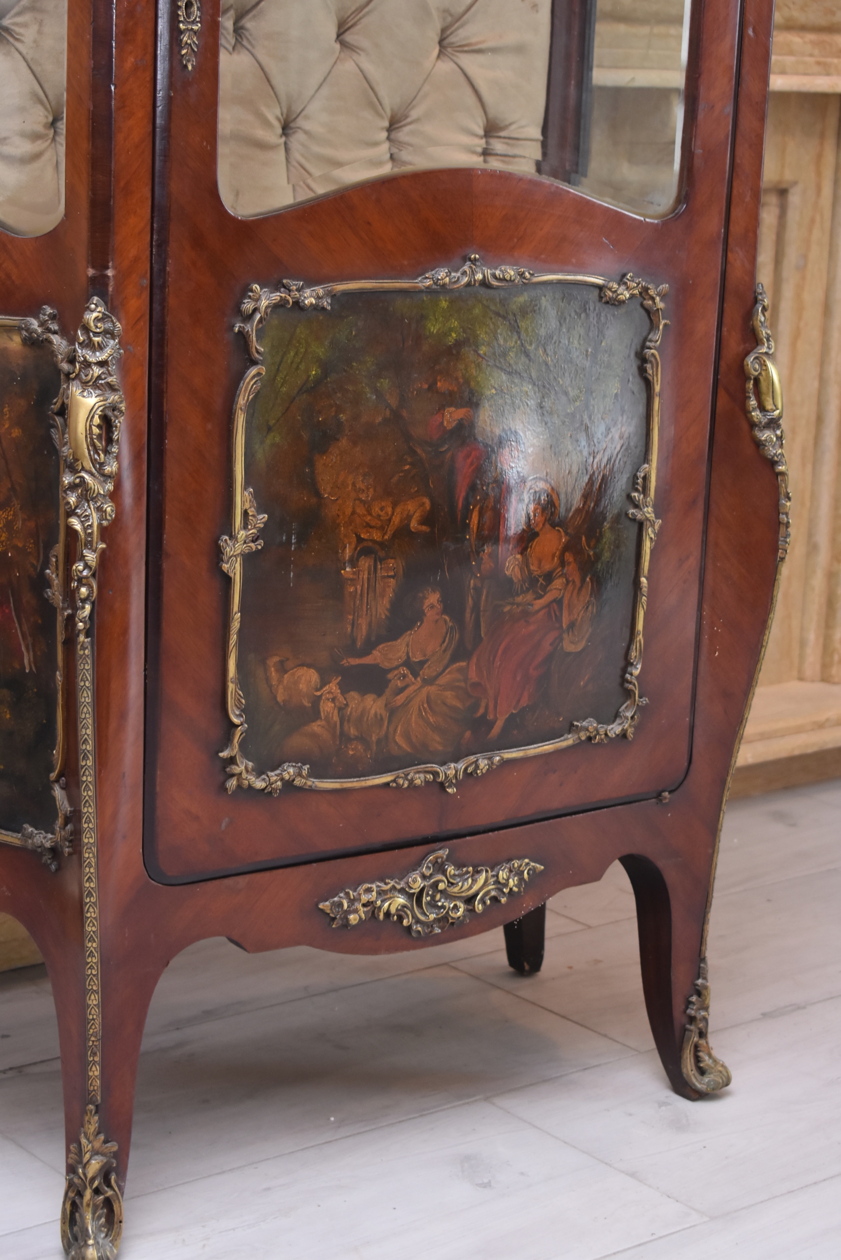 Witryna ta to wyjątkowy element wystroju wnętrza, który zachwyca elegancją i stylem. Ta szafka, będąca jednocześnie pomocnikiem i konsolą, emanuje charakterystycznym urokiem epoki Ludwika XVI i przynosi odrobinę francuskiego szyku do każdego pomieszczenia.