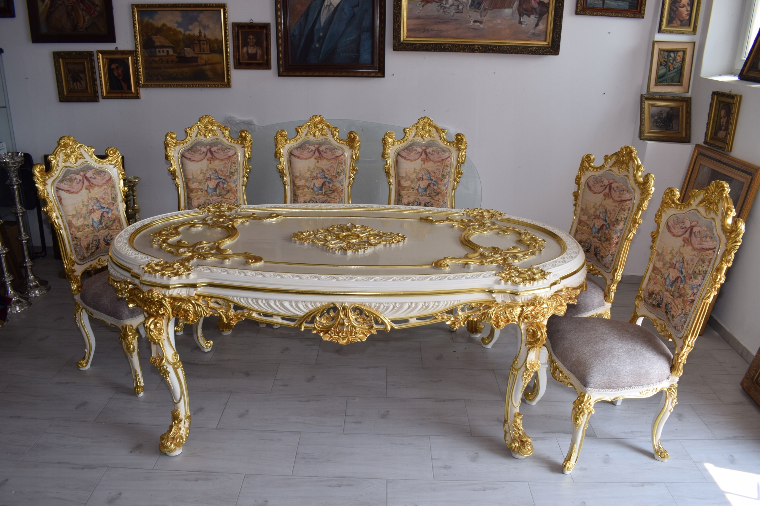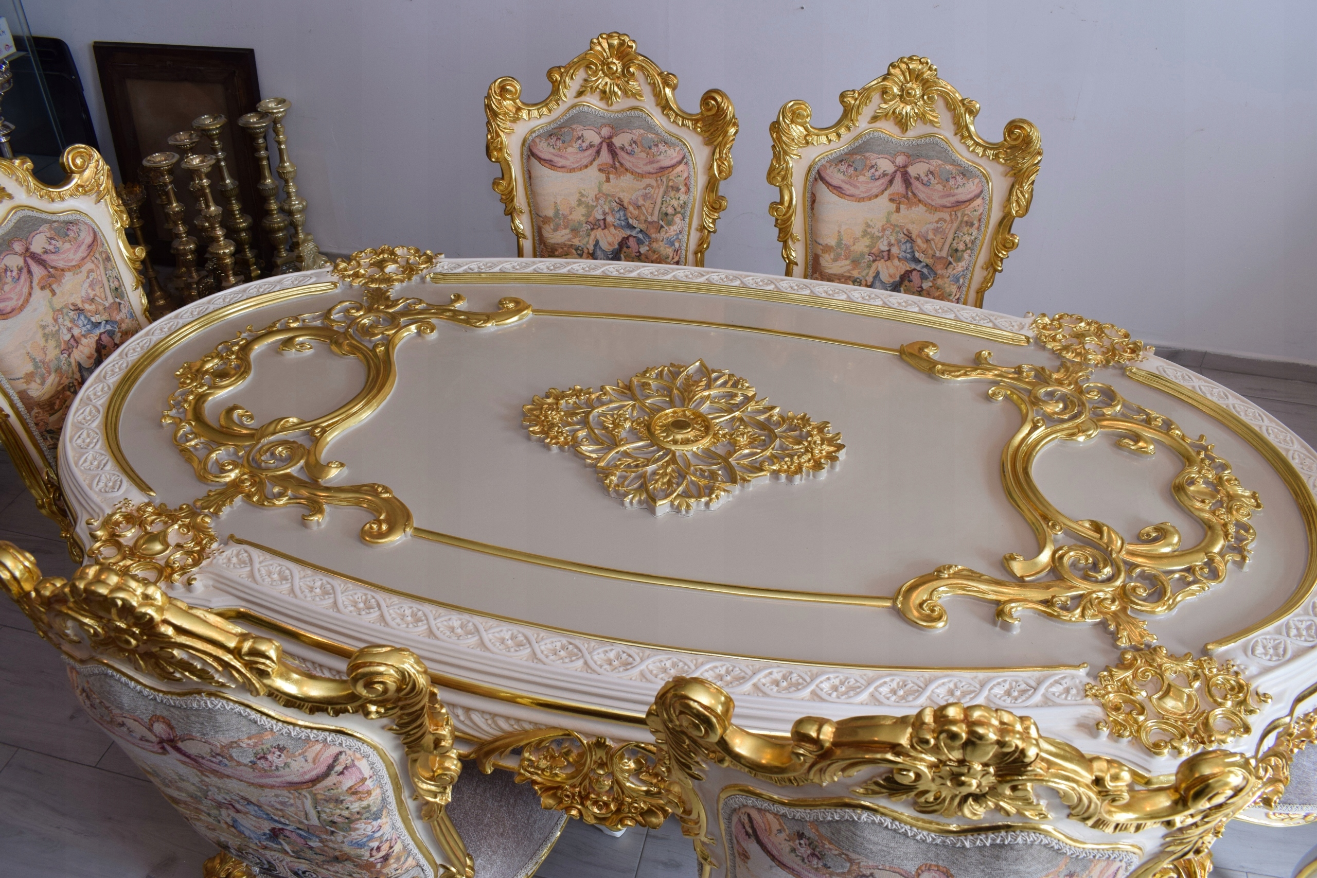 Przedmiotem dzisiejszej oferty jest niesamowicie piękny wygodny luksusowy - komplet mebli - jadalnia w skład którego wchodzą:
