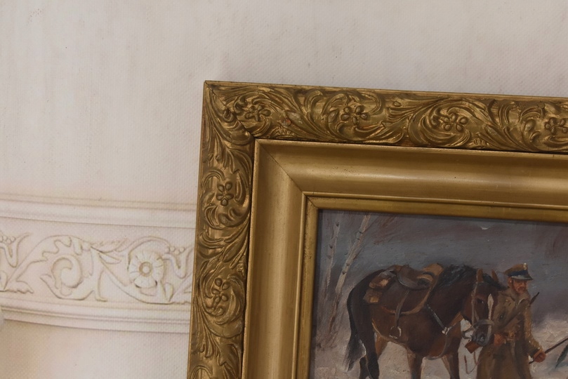 Oprawiony w piękną złotą ramę, która idealnie współgra z samym obrazem.
