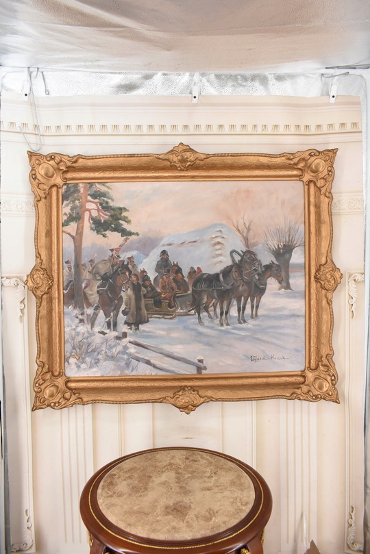 Polecam niesamowicie piękny olbrzymi stary ręcznie malowany obraz olejny na płótnie.