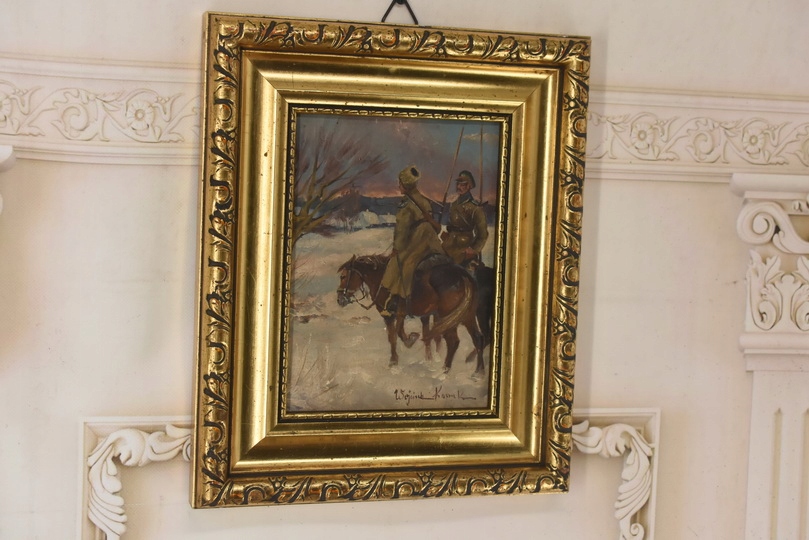 Oprawiony w piękną złotą ramę, która idealnie współgra z samym obrazem.