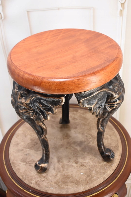 Żeliwny Stolik z Drewnianym Blatem – Stół / Kwietnik – Motyw Słonia