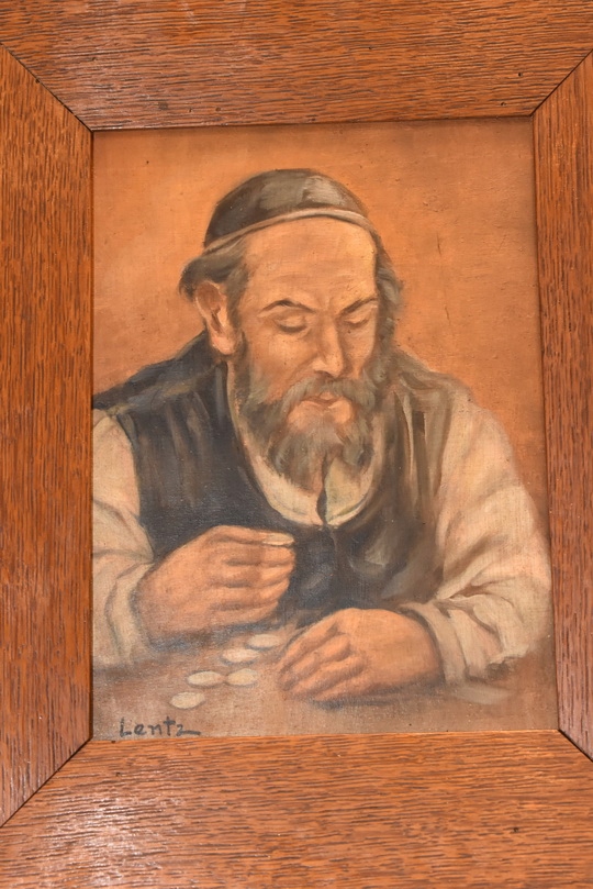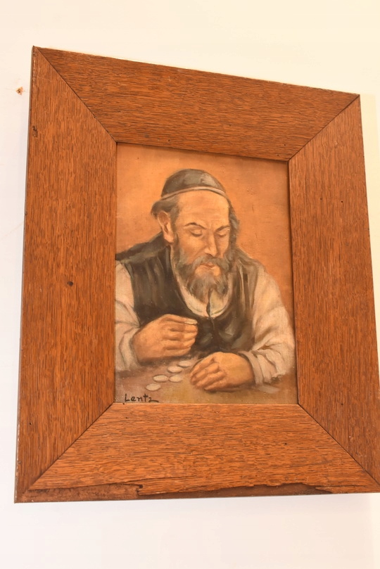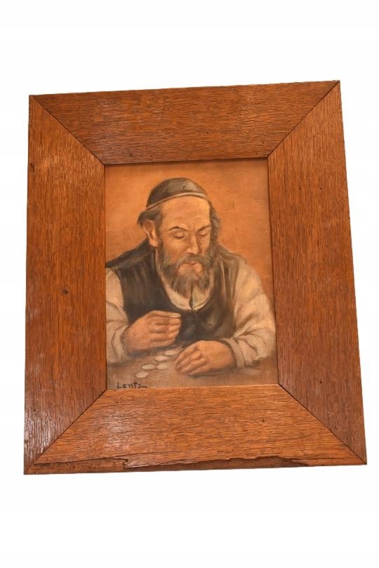 Na sprzedaż oferuję stary obraz olejny na desce przedstawiający postać Żyda liczącego pieniądze – popularny w sztuce motyw malarski, który według tradycji miał przynosić pomyślność i dostatek.