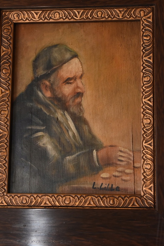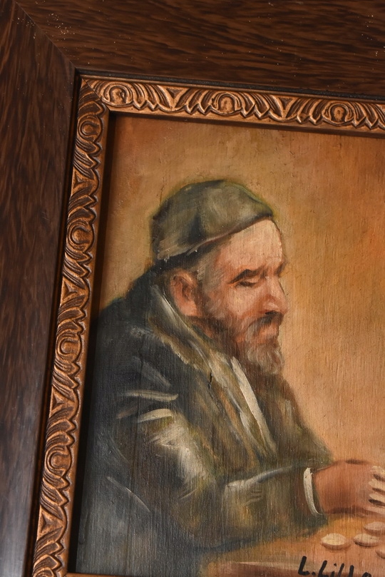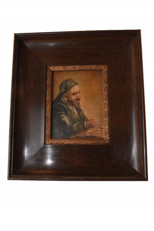 Na sprzedaż oferuję stary obraz olejny na desce przedstawiający postać Żyda liczącego pieniądze – popularny w sztuce motyw malarski, który według tradycji miał przynosić pomyślność i dostatek.