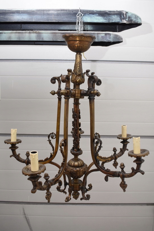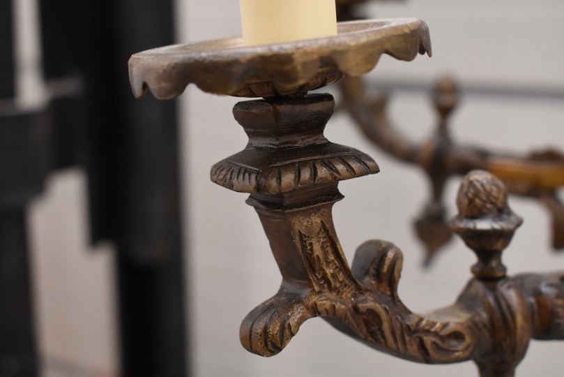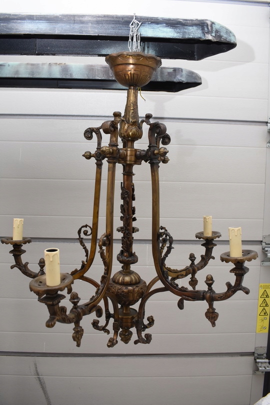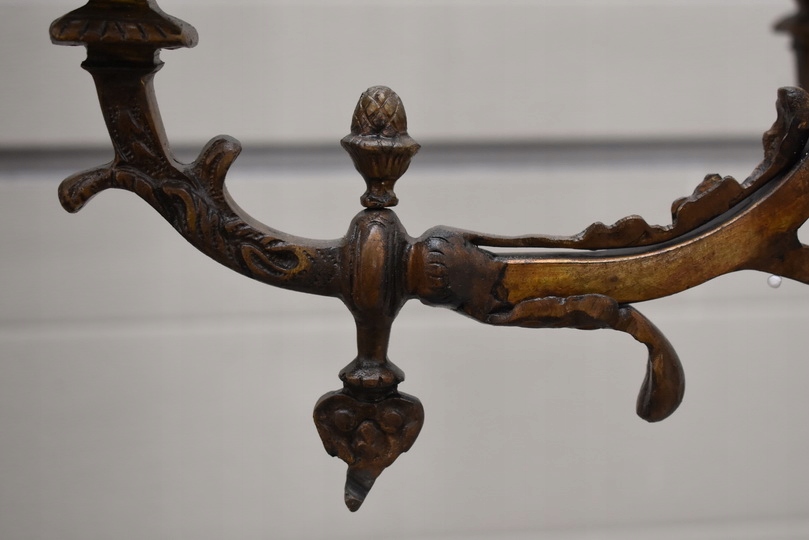 Reprezentacyjny żyrandol barokowy wykonany z wysokiej jakości brązu , bogato zdobiony klasycznymi ornamentami.